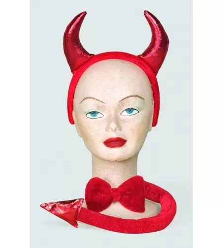 Teufel Zubehör aus Tuch hergestellt. Lieferumfang: Teufelhörner-Haarreif,Teufelsschwanz und Fliege.