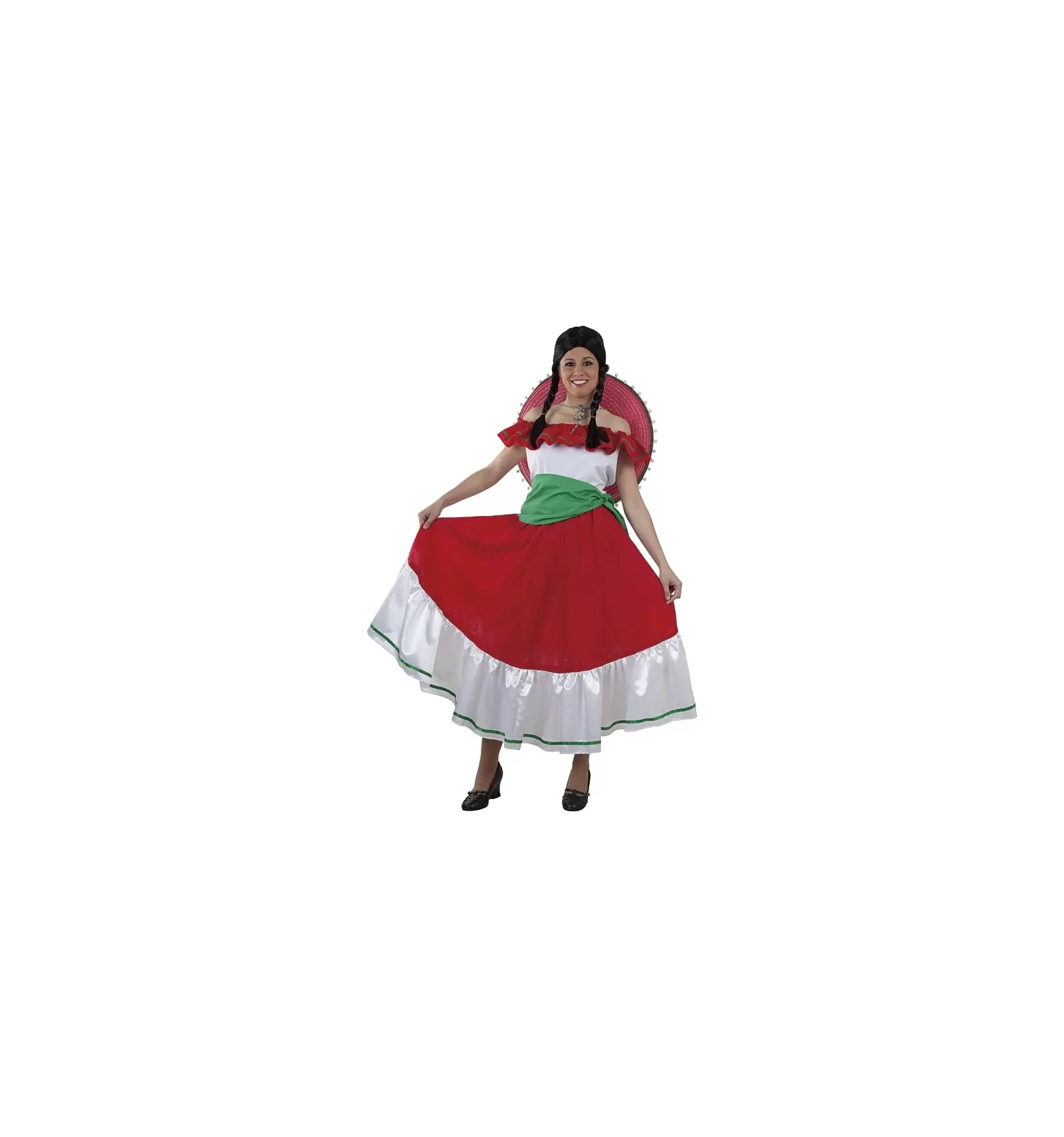 Disfraz mejicana mujer compuesto por camisa, pañuelo y falda.
