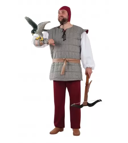 Falconer costume for men. includes pants, belt, glove, cap and vest with sleeves.