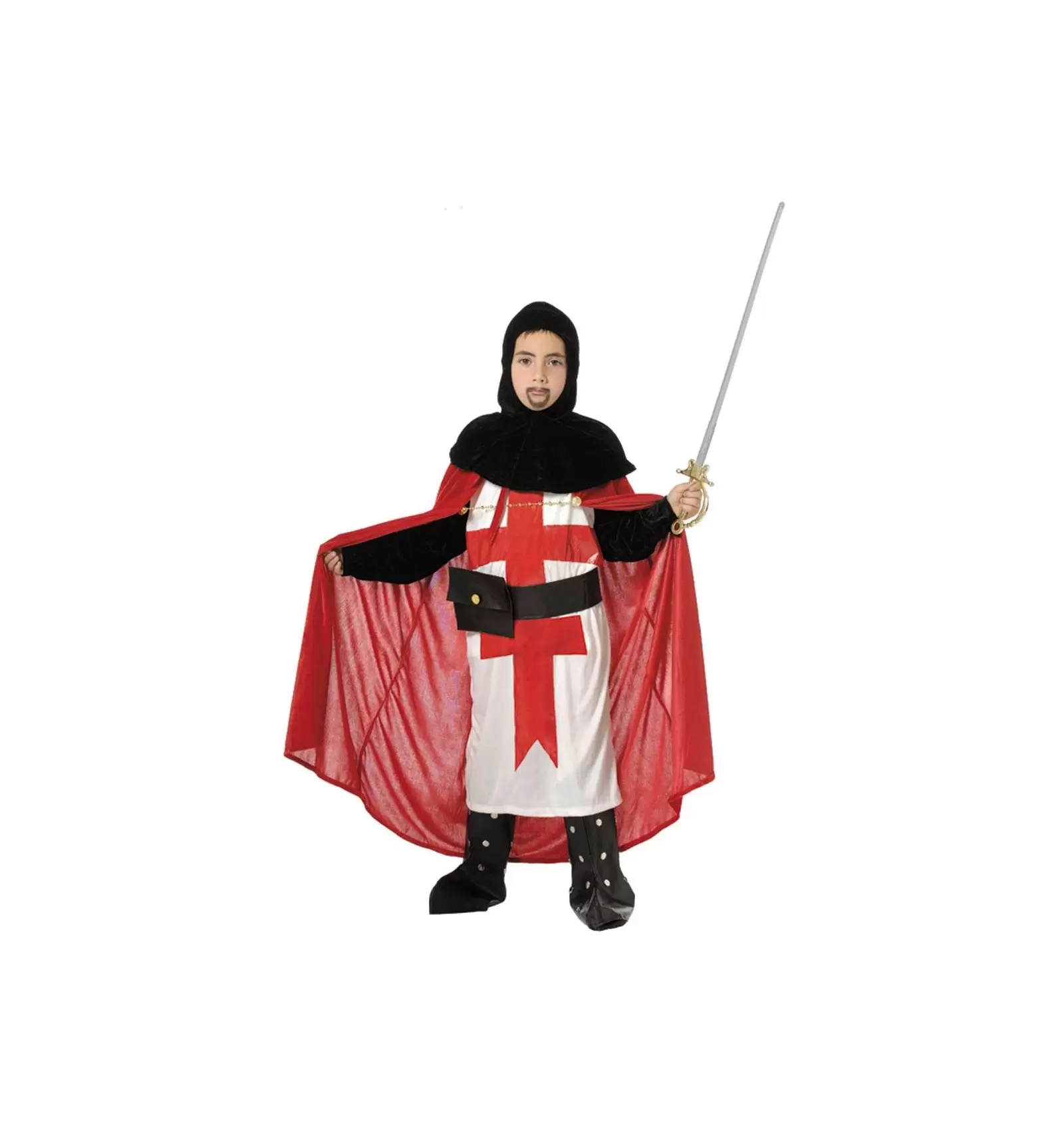 Kreuzfahrer Kinderkostüm in Größe 6,8 und 12 hergestellt. Lieferumfang: Tunika, Umhang,Gürtel, Stiefelstulpen und Gugel.
