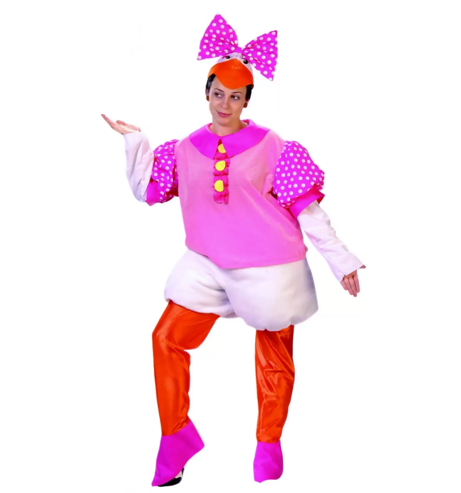 Duck ladies costume. Included in delivery: cullote, blouse, cap and boot tops. Measures: broad-shouldered: 42 cm., and chest: 100 cm.