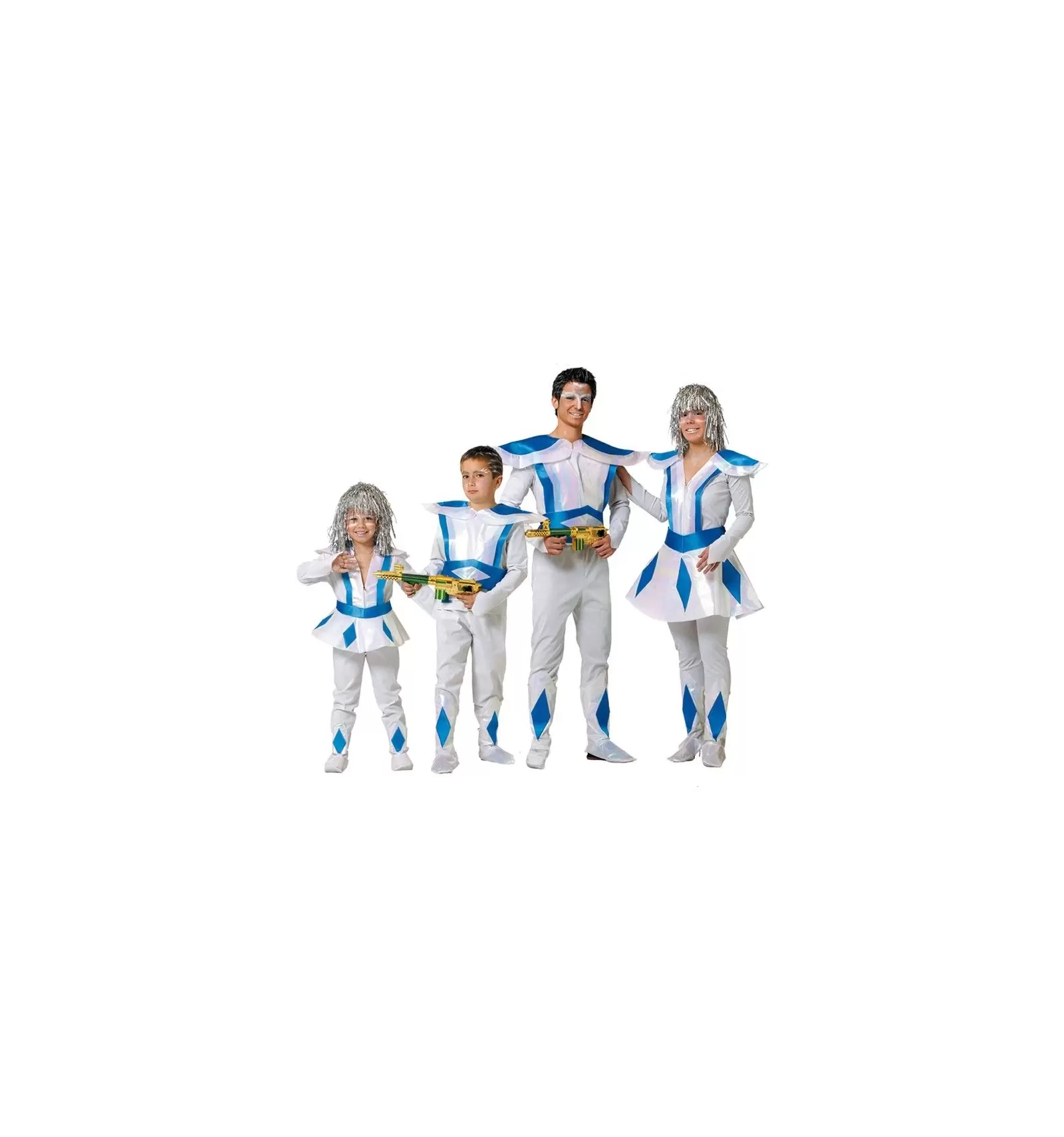 Spaceman costume. Comes in sizes M and L and includes one-piece, boot covers, gloves, and spacesuit.