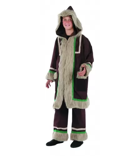 Eskimo boy costume. Included in delivery: jacket with hat and trousers. Sizes: 6,18 and 12 years.