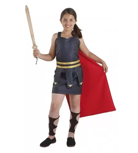 Roman warrior costume for 6,8, and 12 year-olds. comes with dress, skirt, belt, cape, and leggings.