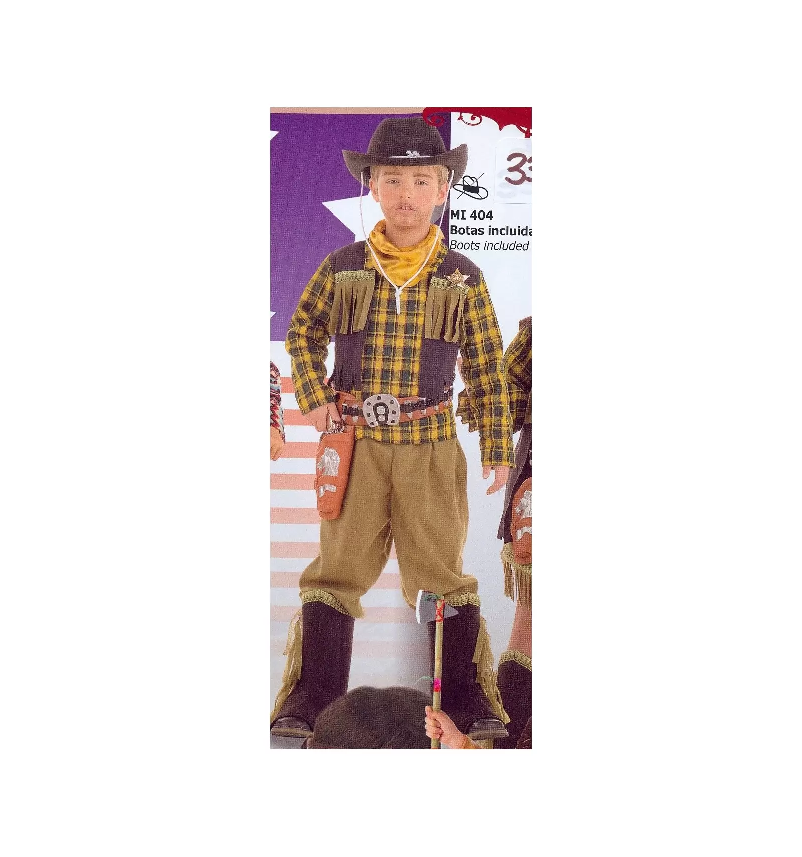 Cowboy Sheriff kids costume. Included in delivery: trousers, shirt, vest, scarf, boots tops and sheriff star.