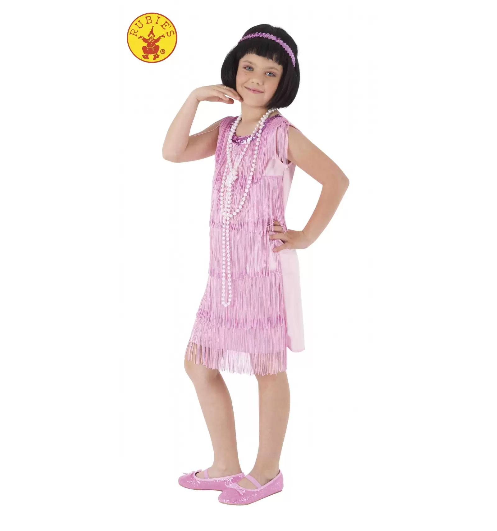 Pink charleston costume for girls. includes dress and hair ribbon.