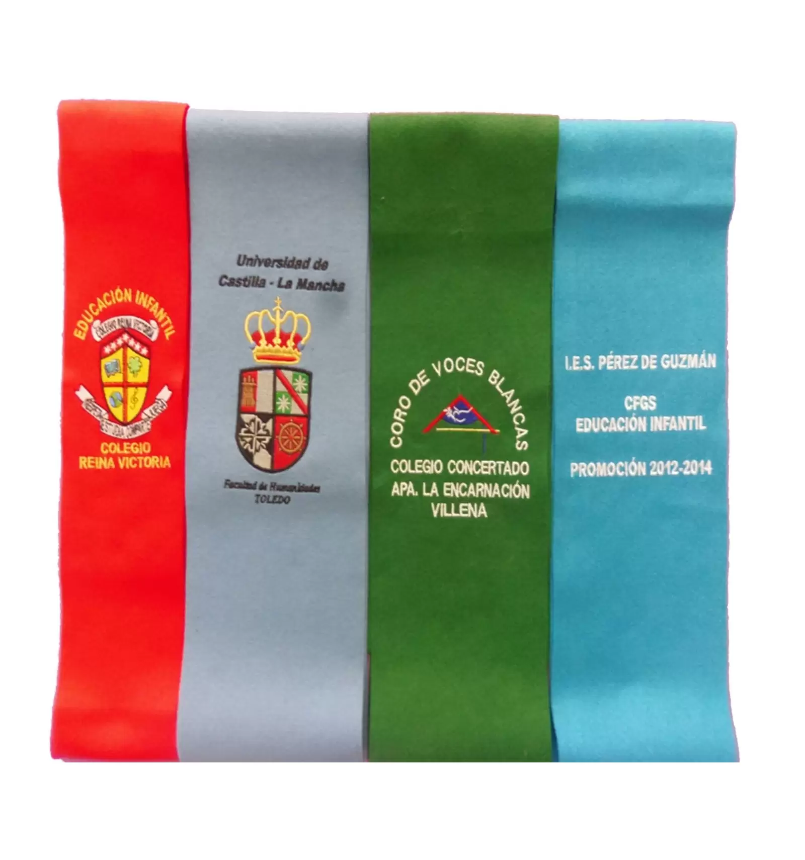 Becas made of felt. 13 cm wide by 1.60 m long. the price of the beca depends on the amount to be produced