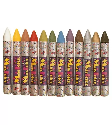 Big size make-up crayons. Available in several colours. white,black, red, blue, yellow, green, brown, orange, gold, silver and navy blue.