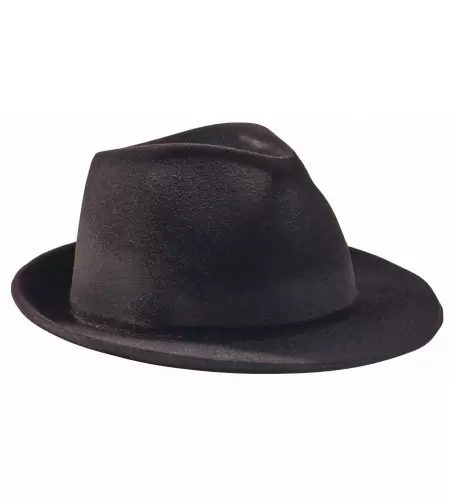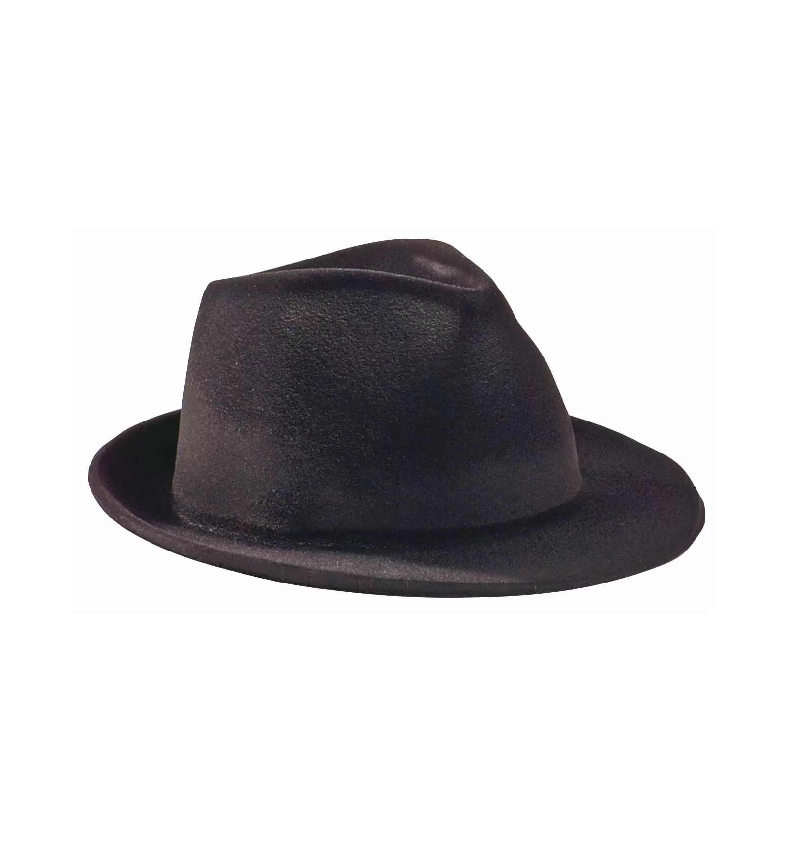 Hat made of flocked plastic, with the feel of velvet. adult size. available in black and white.