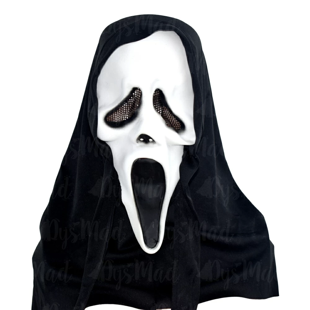 Large scream mask. ideal for decorating venues, etc. made of different colors of rigid plastic and gauzes. measuress 110 x60 cm, plus fabric.