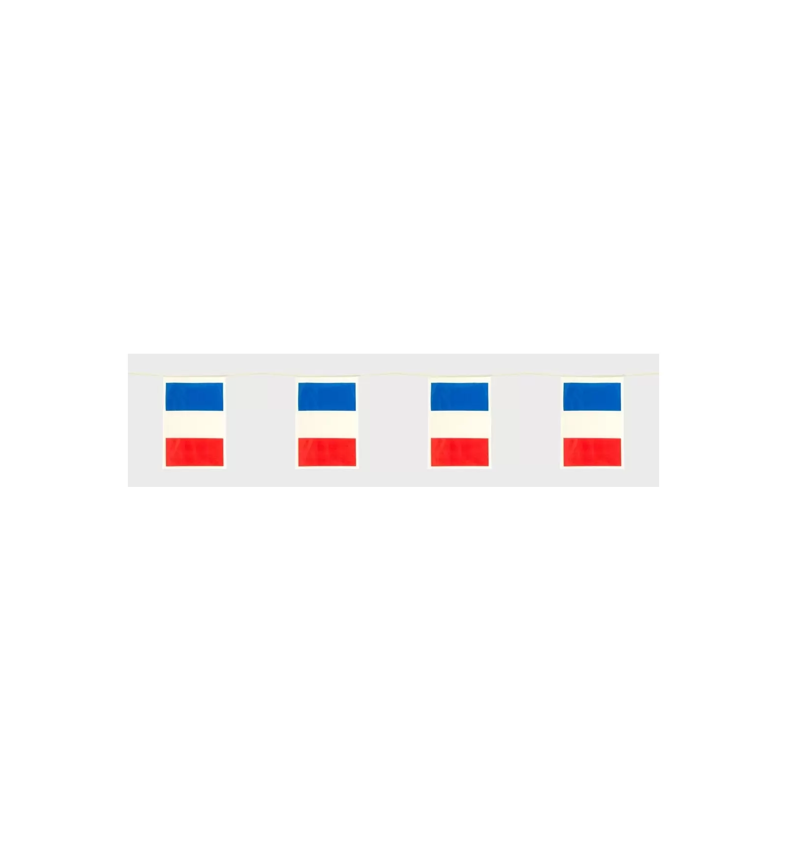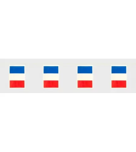 El accesorio bolsa bandera Francia en medida 20x30 cm de plástico es uno de los productos más vendidos para decoración de calles o interiores que necesiten esta temática. El producto contiene: 50 metros de cinta con formatos de la bandera de Francia cosidos a ella. El formato de la bandera tiene un tamaño de 20 x 30 centímetros. Artículo fabricado en España. Para pedidos en cantidad consultar presupuesto. El precio que se muestra es por un paquete de 50 metros. ¿Esta tira de banderines franceses en plástico no es el complemento de decoración que necesitas? Entra en la sección de adornos y productos de decoración que ofrecemos en nuestro catálogo para que puedas seleccionar el que más cumpla tus requisitos. ¡No dejes pasar la oportunidad de hacerte con uno de nuestros fantásticos productos al mejor precio!