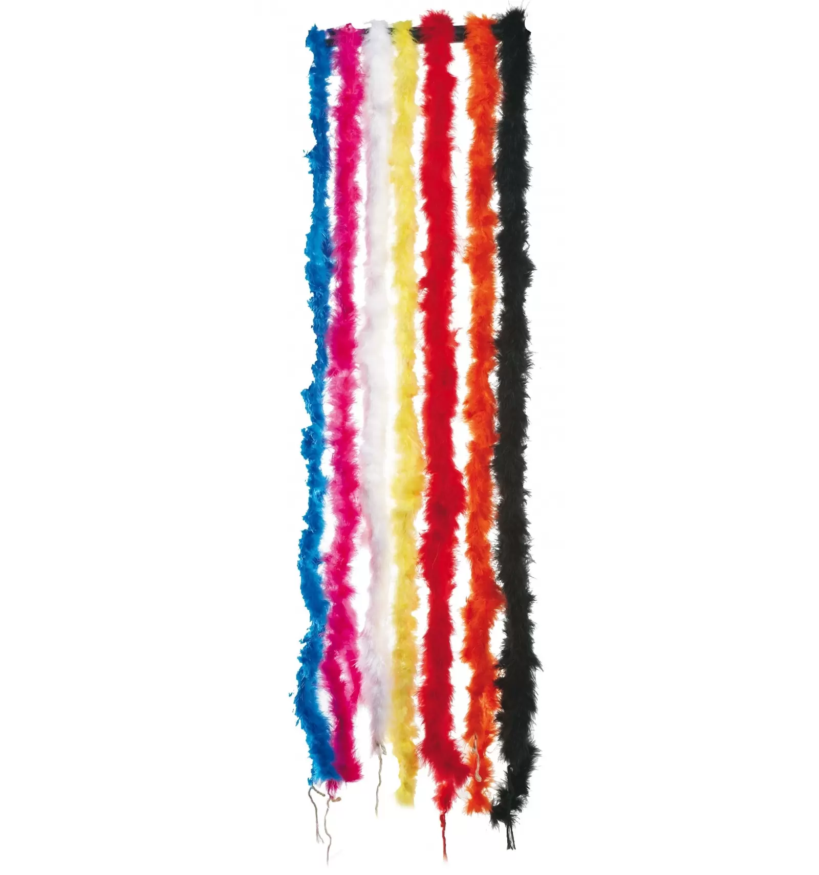Esta tira de marabú de 10 metros de longitud se encuentra disponible en nuestro catálogo en varios colores y será un colorido accesorio para completar tu vestido de charlestón.
