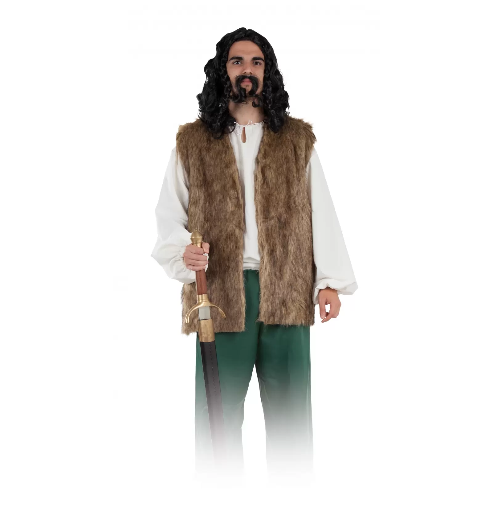 Este vistoso chaleco de pelo oscuro para adulto es uno de nuestros nuevo y originales complementos del apartado medieval.