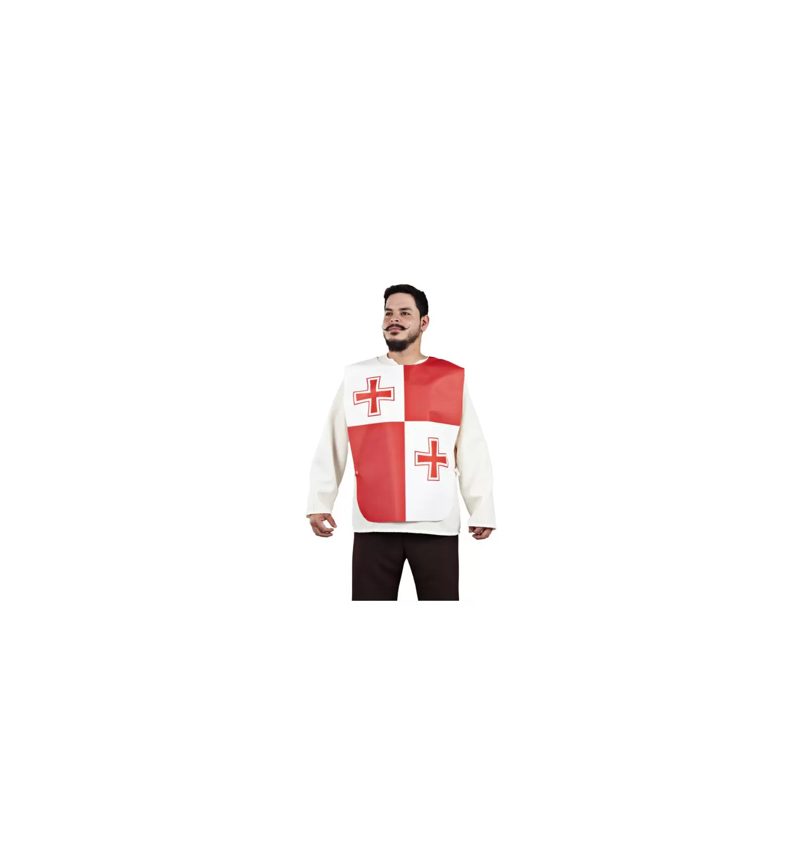 Este peto medieval doble cruz adulto se encuentra disponible en talla única, y será un original complemento para que te diviertas en el día de carnaval o en tu próxima fiesta medieval.