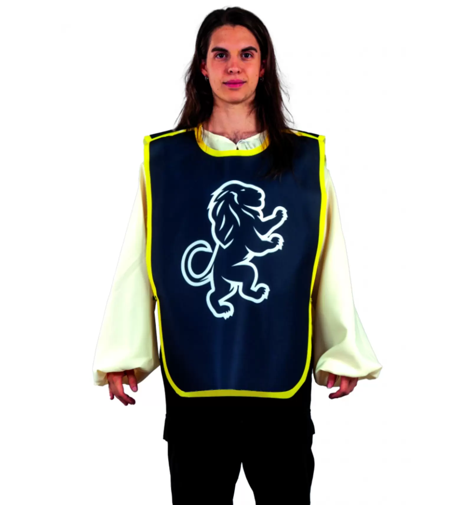 Este peto medieval león adulto se encuentra disponible en talla única, y será un original complemento para que te diviertas en el día de carnaval o en tu próxima fiesta medieval.