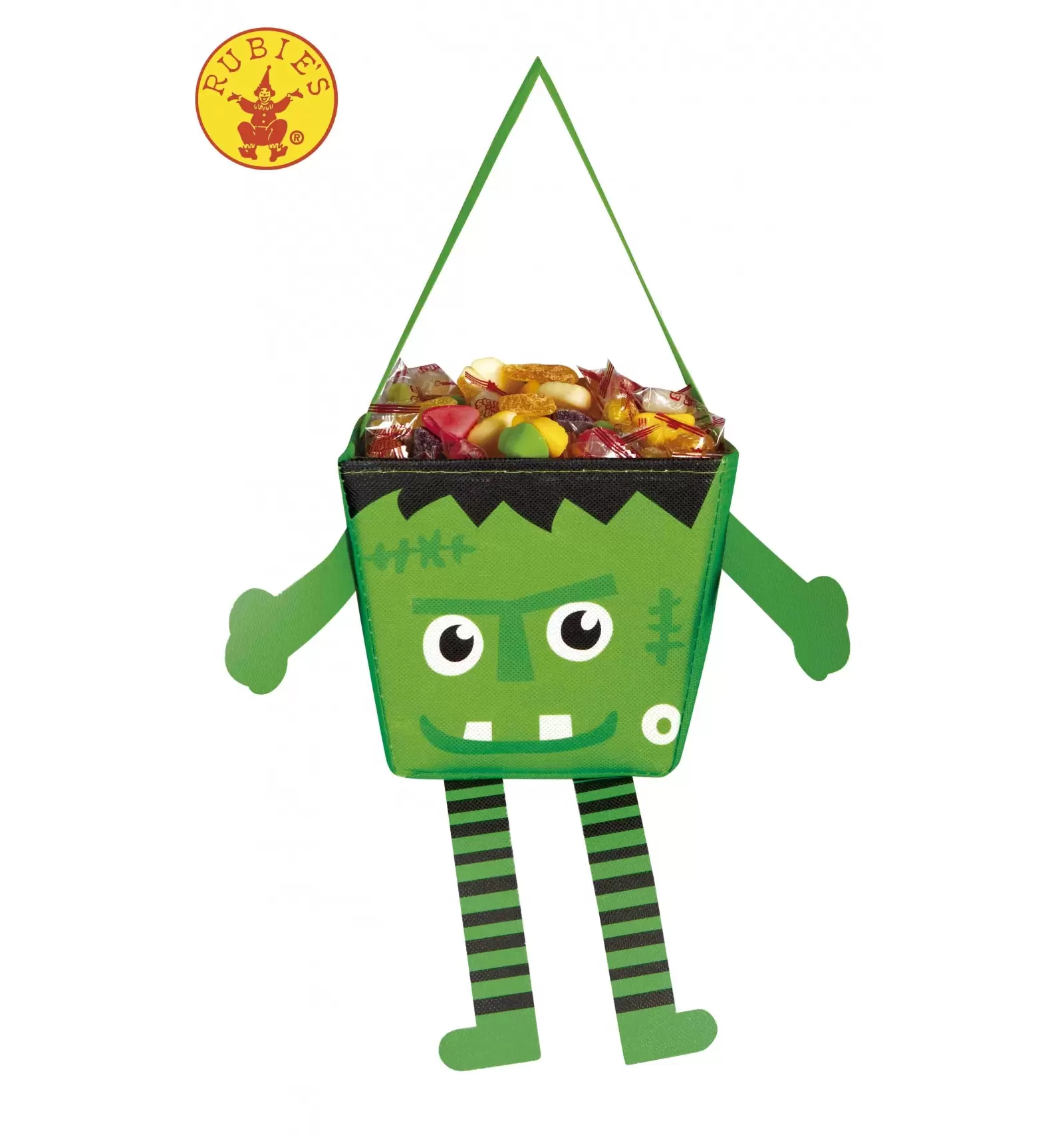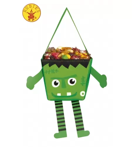 Esta nuevo cubo porta-caramelos frankie en color verde con adornos de Frankenstein se encuentra disponible en un solo tamaño y será el complemento perfecto para acompañar a los más peques en sus primeras noches de Halloween.;/span>;/span>