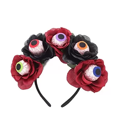Esta decorada y siniestra diadema de catrina con ojos se encuentra disponible en un solo tamaño y será el accesorio ideal para dar ese toque que necesita tu modelito de la noche de Halloween.