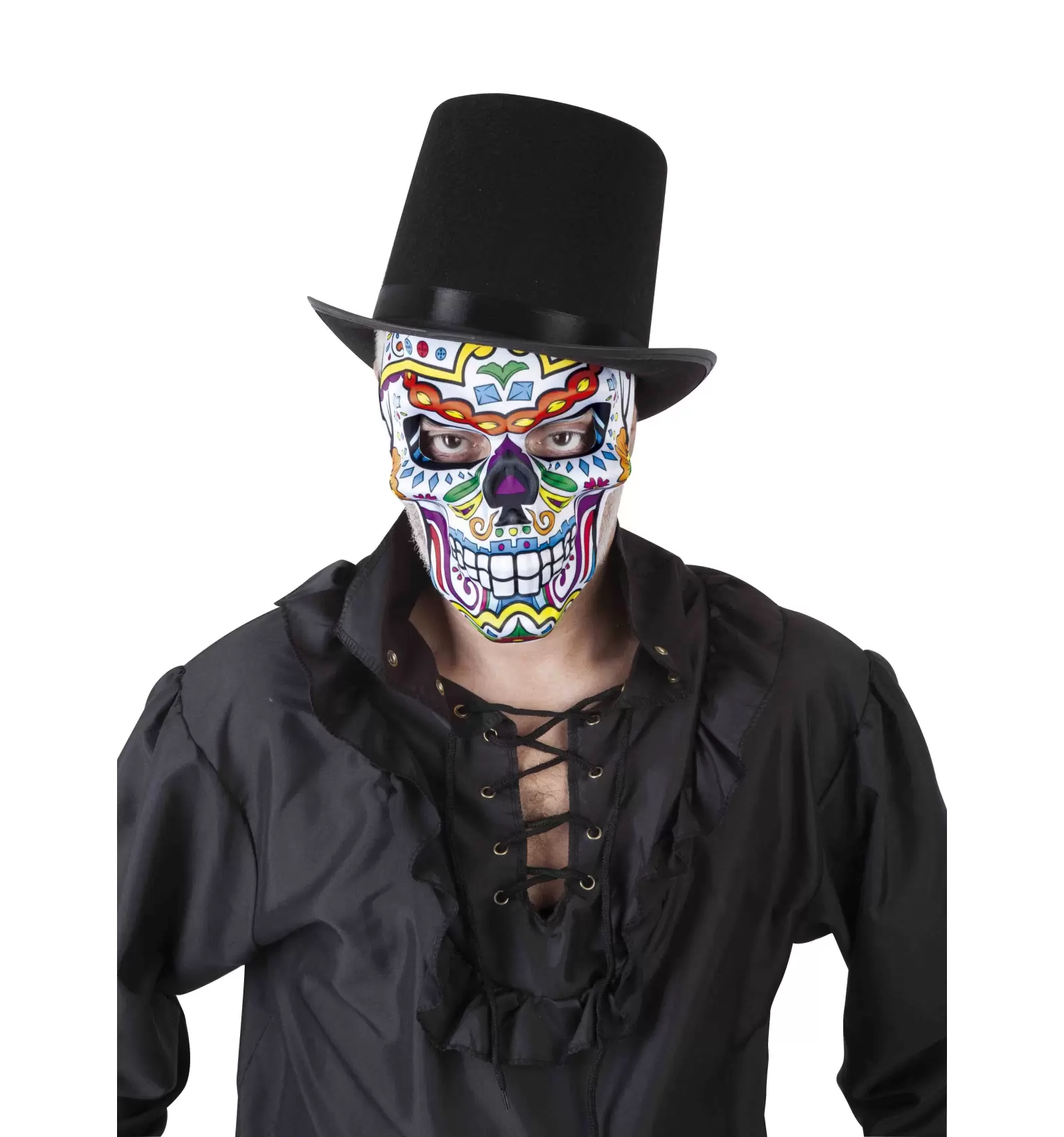 ¡Consigue ahora esta colorida y terrorífica máscara de Catrin skull con la que no pasarás desapercibido en tu próxima fiesta de terror!