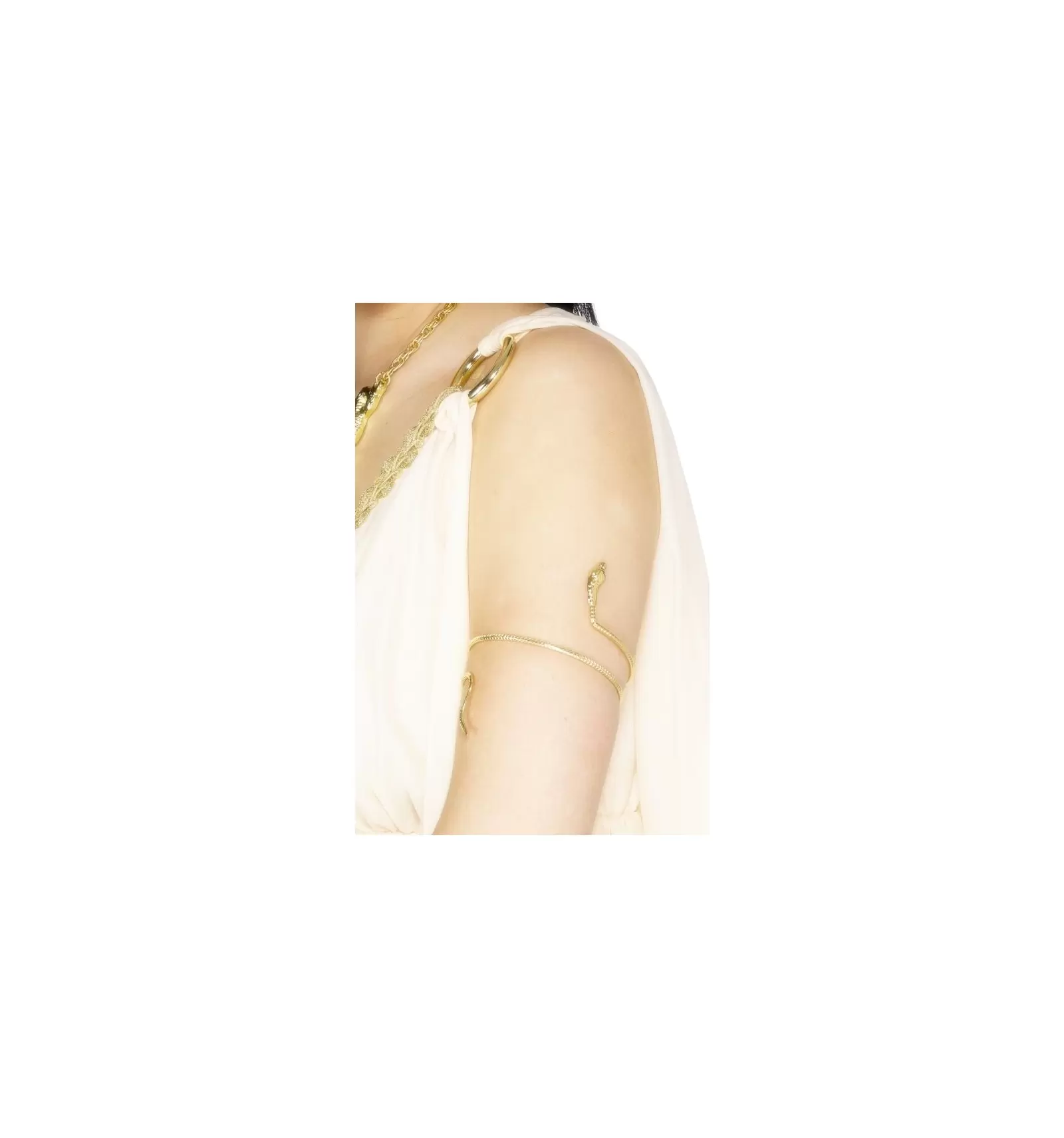 Este complemento brazalete egipcio serpiente (adaptable al brazo) se encuentra disponible en un solo tamaño y fabricado en metal.