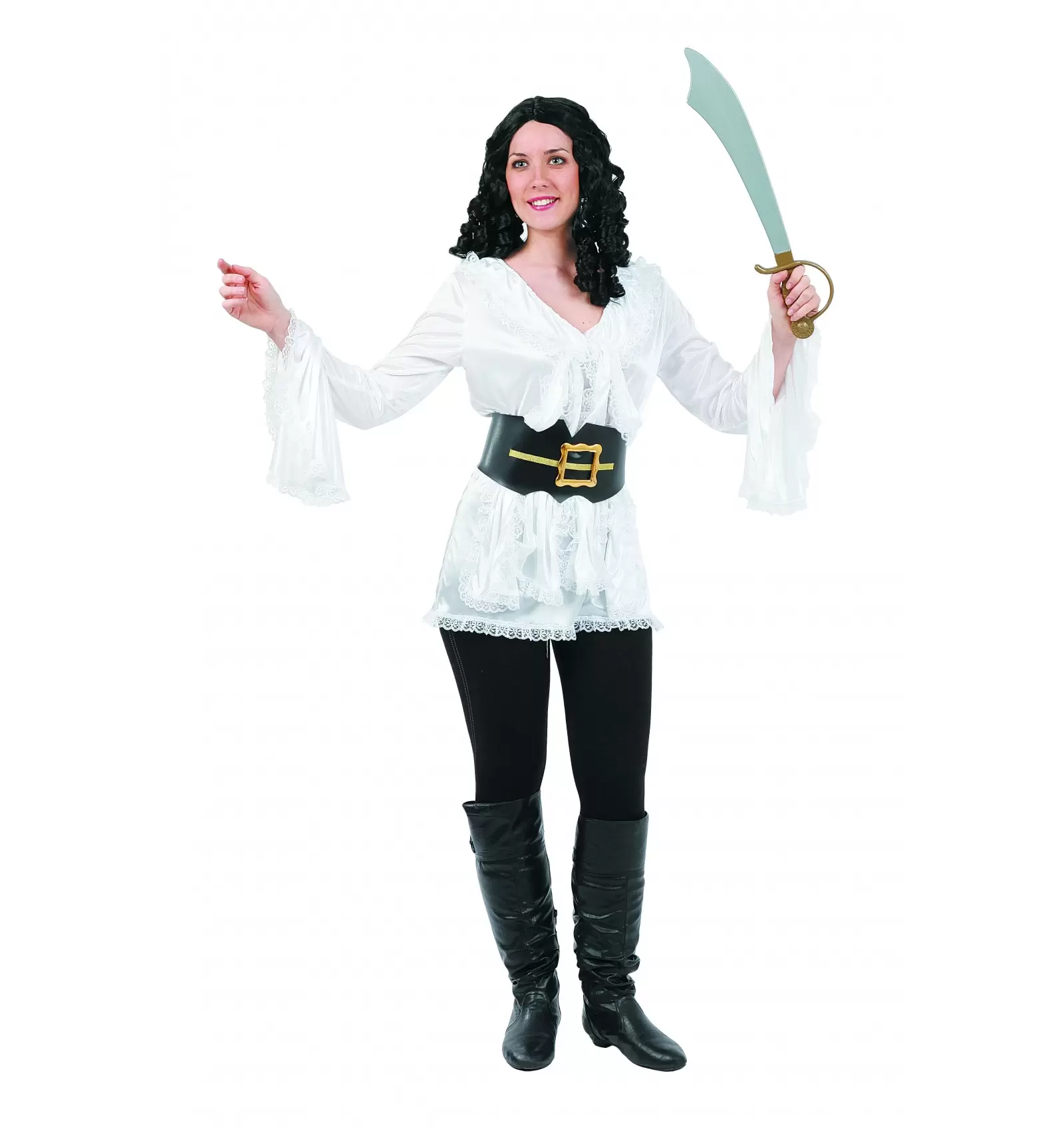 Esta conseguida camisa de espadachín mujer para adulto se encuentra disponible en una sola talla y es el producto ideal para hacerte o completar tu disfraz de mosquetera...