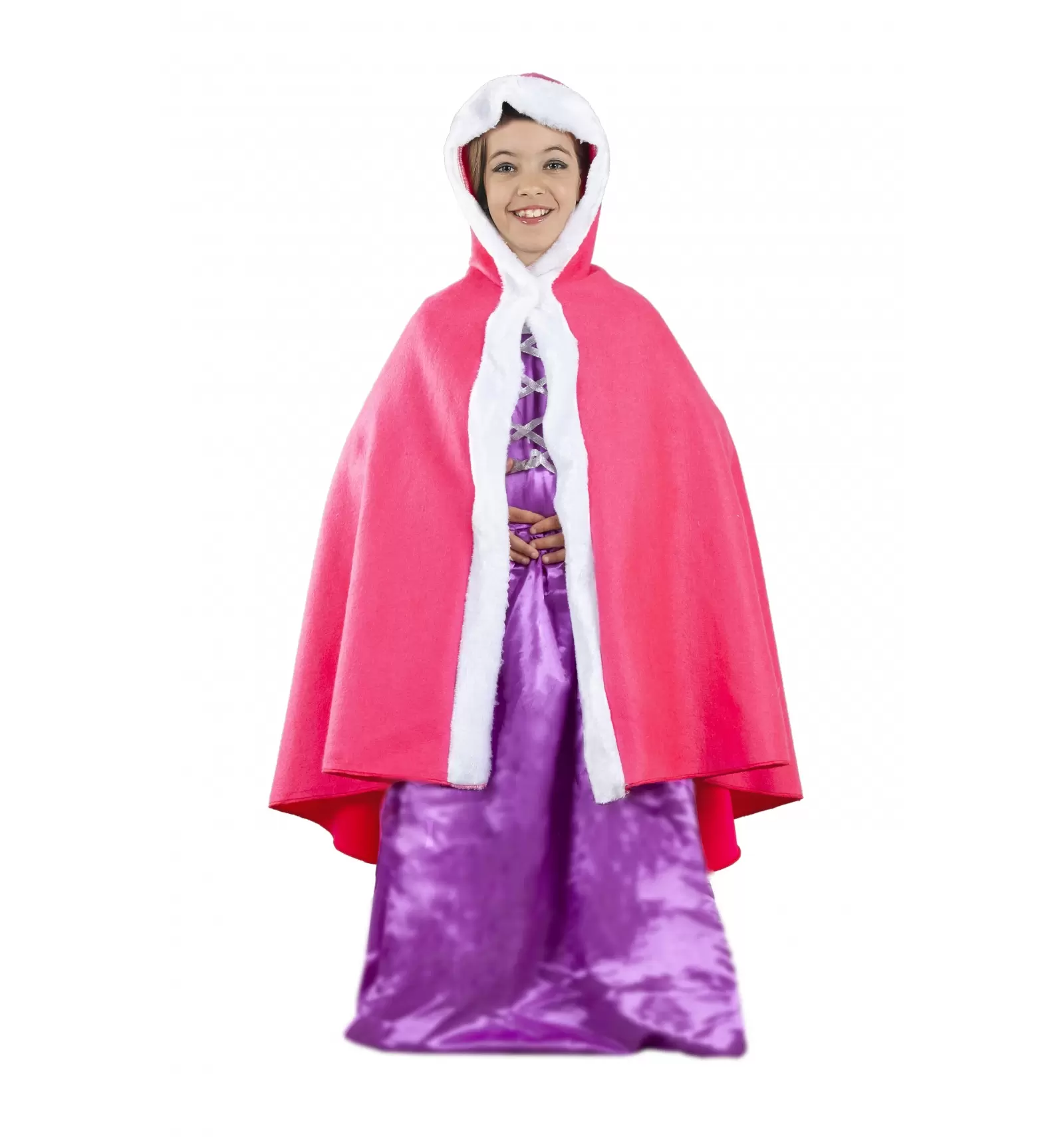 Esta nueva capa de princesa infantil en color rosa es el accesorio ideal si tienes un vestido de princesa en el armario y necesitas algo que te guarde un poco del frío. ¡Aumenta la elegancia de tu modelito con esta original y suave capa con capucha! El producto contiene: Capa con capucha. Disponible en tallas 6 y 10 años para niña. Fabricada en material de tela y borreguito blanco. ¿No es una capa de princesa lo que estás buscando? ¿Necesitas un disfraz completo de princesa para divertirte como nunca en tus próxima fiesta de disfraces? Entra a ver el apartado de disfraces de princesa que ofrecemos en nuestro catálogo y escoge el diseño que más cumpla con tus requisitos en la talla apropiada. Encontrarás vestidos de todos los colores, para todas las tallas y al mejor precio. ¡No dejes pasar la oportunidad de hacerte con uno de nuestros fantásticos productos para pasarlo en grande!