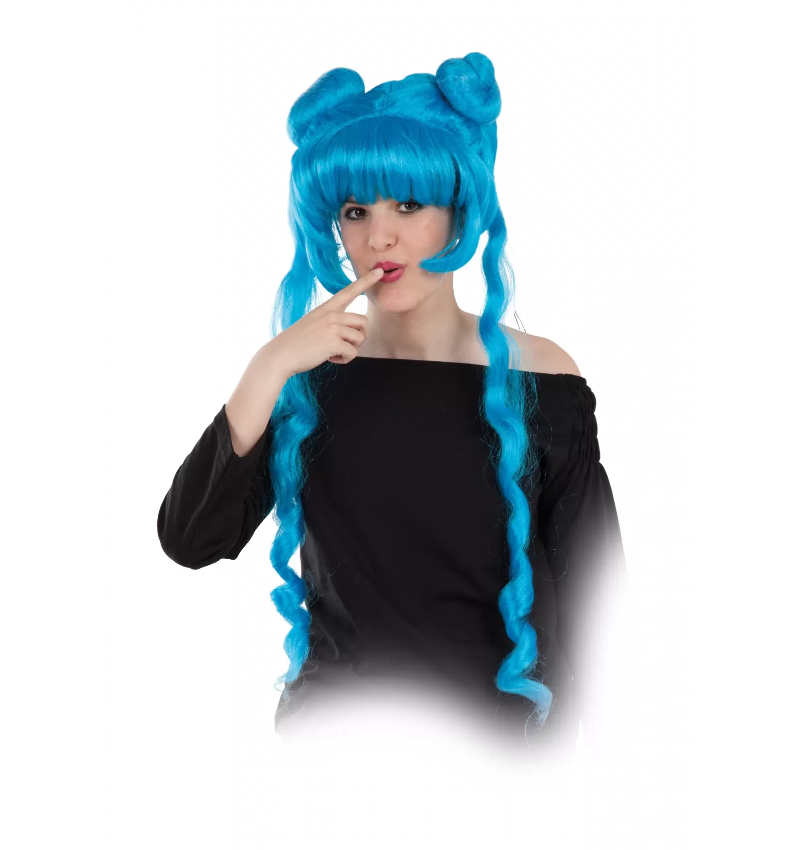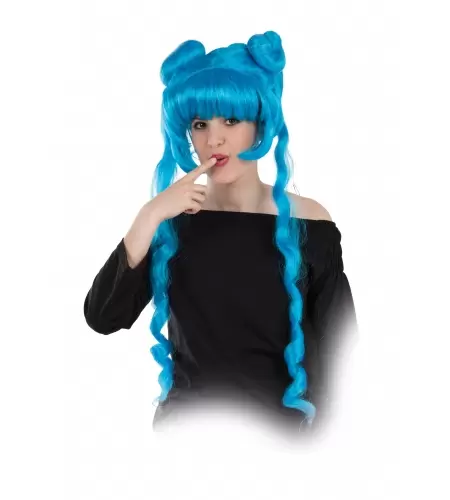 Peluca fabricada con pelo sintético en color azul y naranja, talla única de adulto.