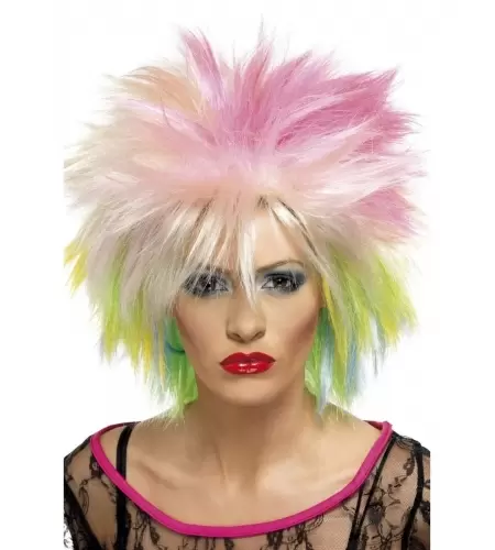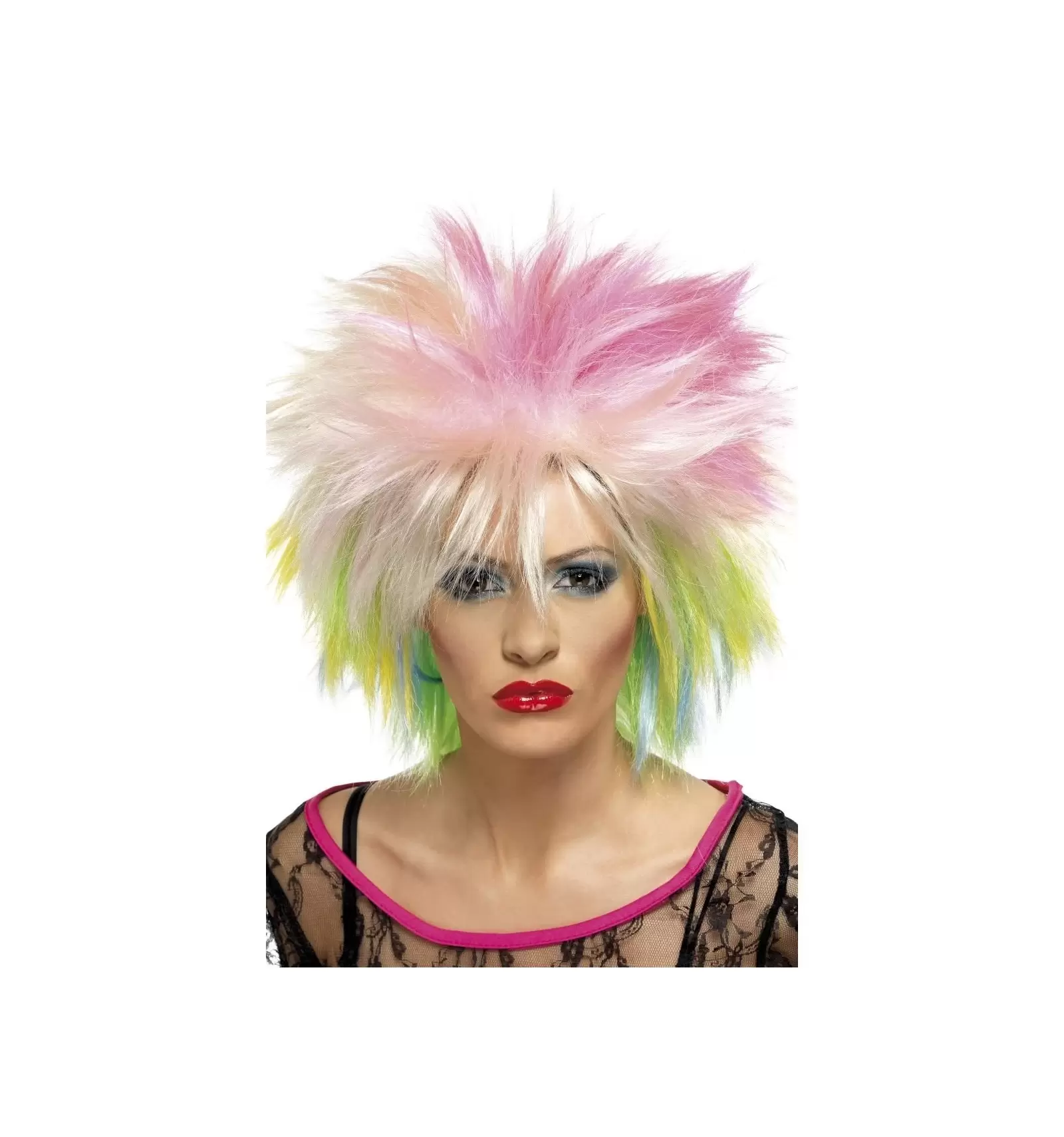 Comprar peluca multicolor de los años 80 en la tienda de disfraces Comarfi.