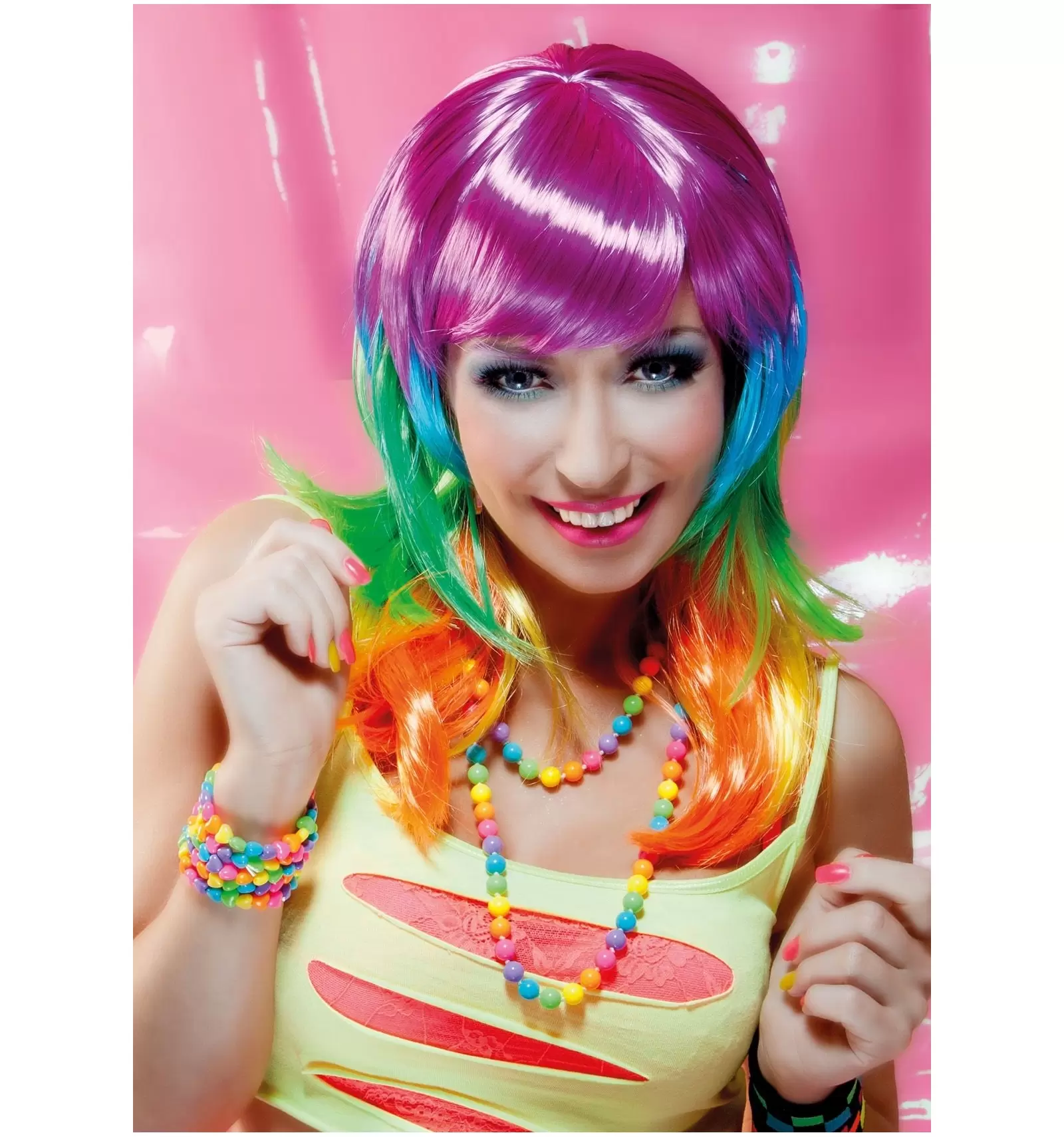 Comprar peluca multicolor larga en la tienda de disfraces Comarfi.