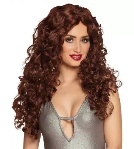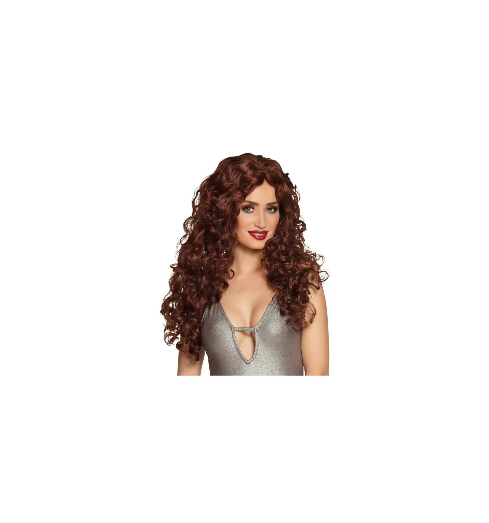 Comprar peluca ondulada castaña en la tienda de disfraces Comarfi.