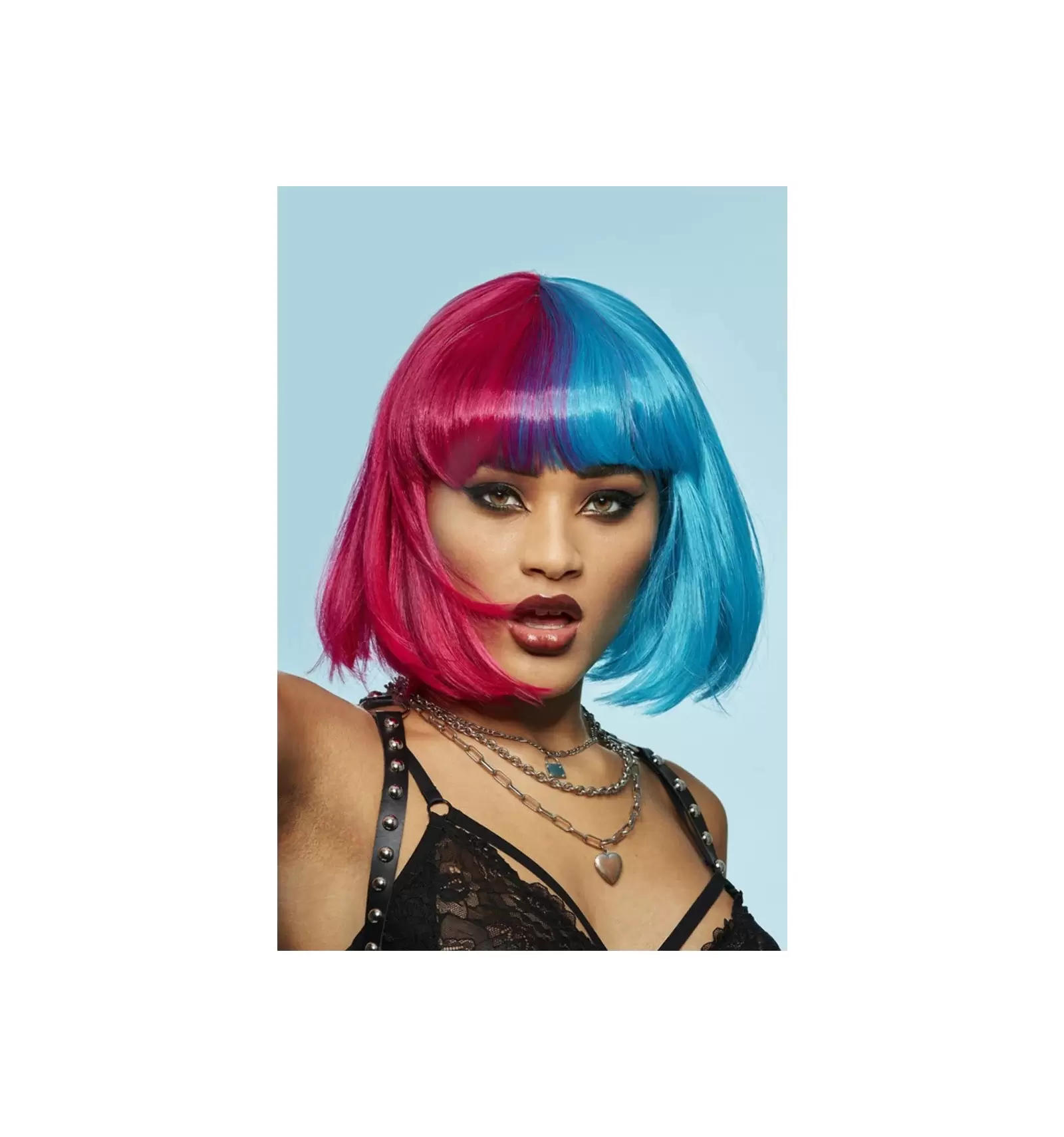 Comprar peluca valetina roja y azul en la tienda de disfraces Comarfi.