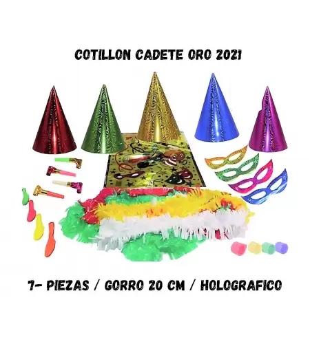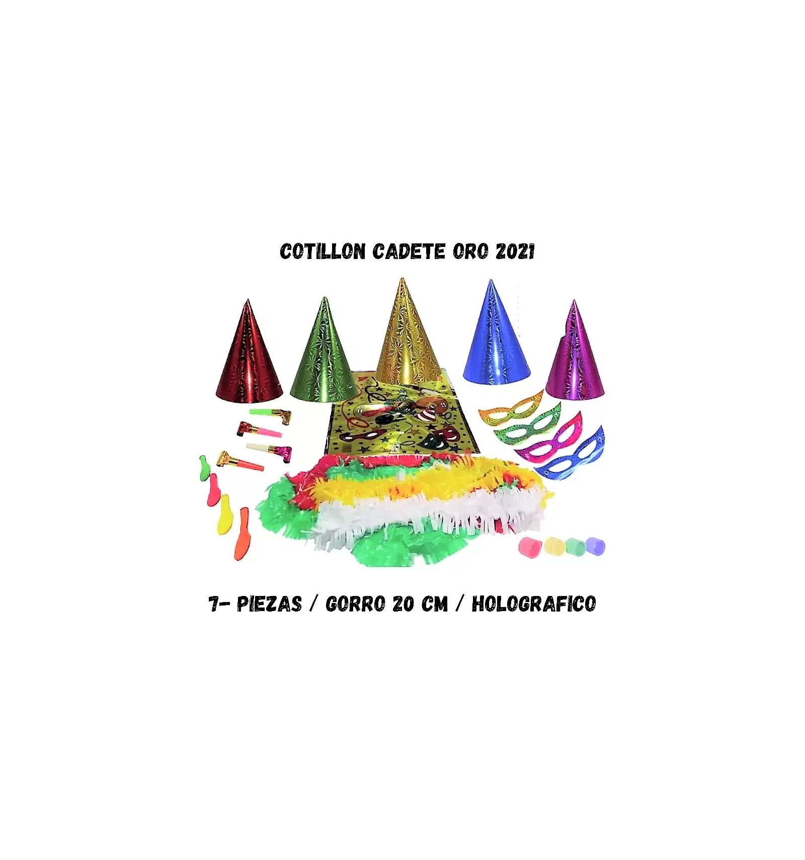 EL COTILLÓN ÁGATA INCLUYE: BOLSA METALIZADA 32X45 CM, SOMBRERO PEQUEÑO, COLLAR HAWAIANO DE PLÁSTICO, ESPANTA-SUEGRAS, 5 ROLLOS DE SERPENTINA, GLOBO DE GOMA O BIGOTE Y ANTIFAZ LITOGRAFIADO.