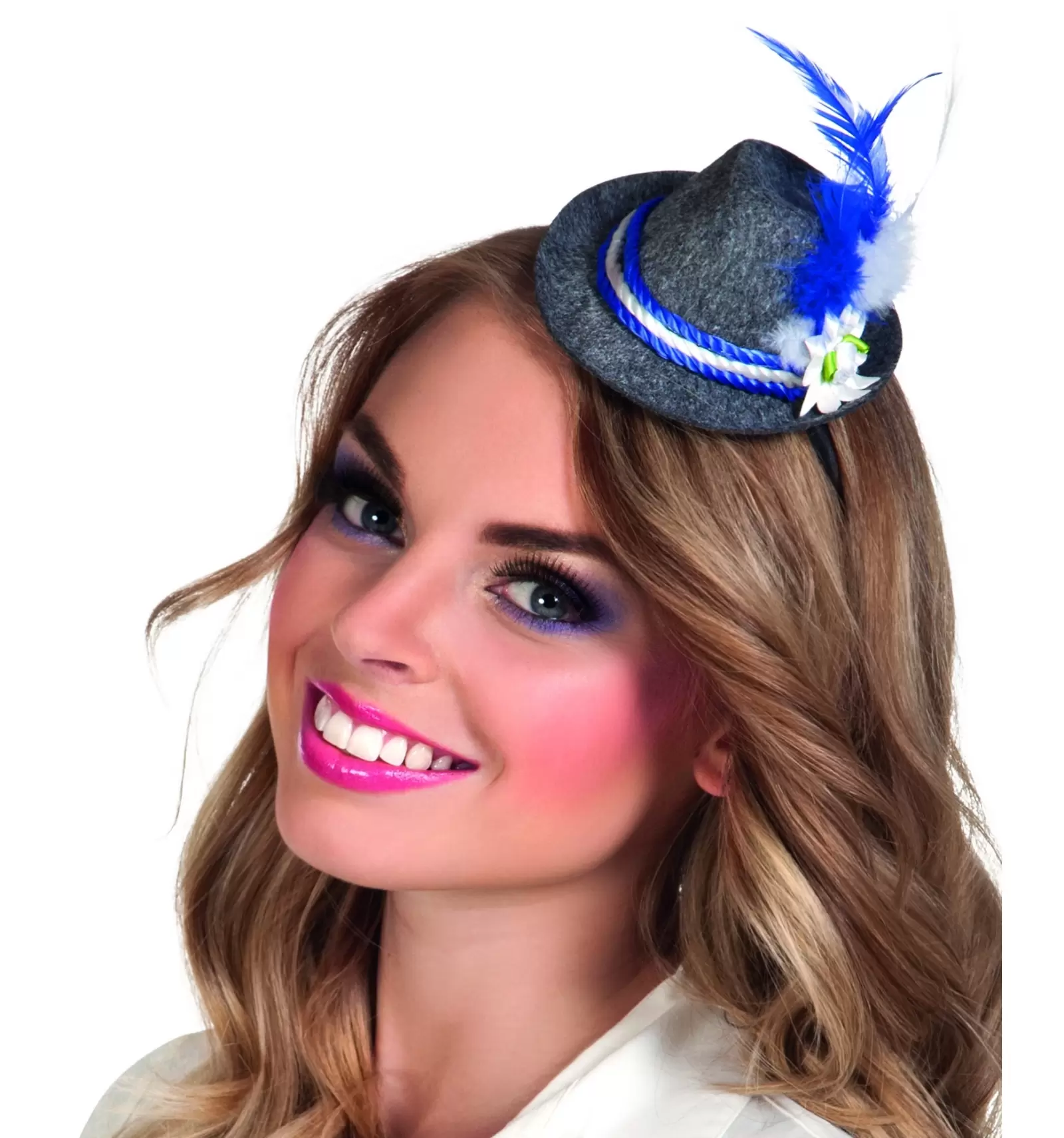 El artículo incluye: Diadema con pequeños sombrero de tirolesa para mujer.