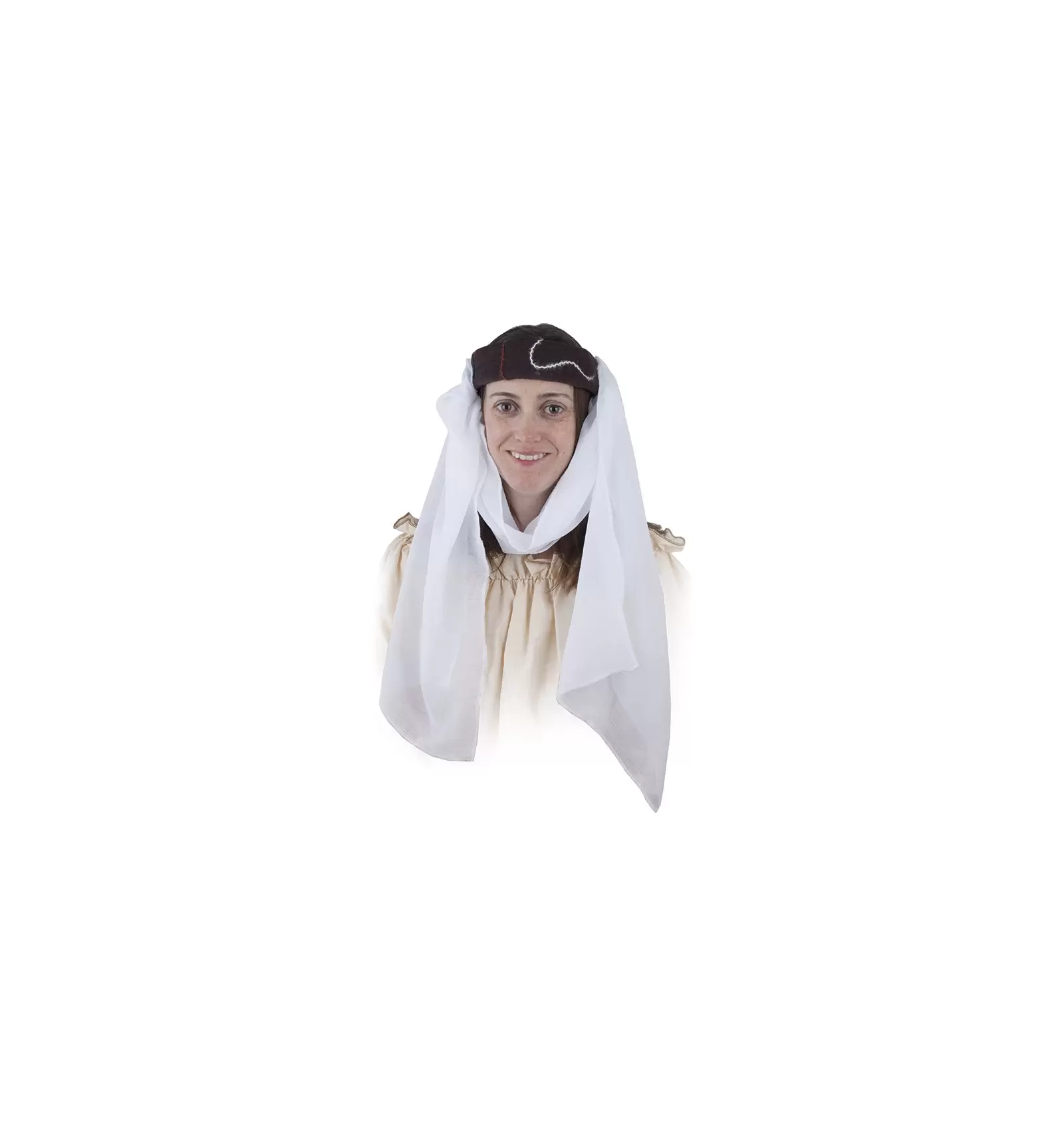 El producto contiene: Tocado medieval con velo bordado y detalles.