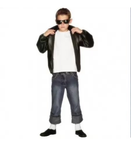 Este complemento chaqueta grease infantil se encuentra disponible en diferentes tallas para niño y es un artículo ideal para combinar con unas gafas y un poco de gomina en tu pelo y romper tu próxima fiesta de disfraces...