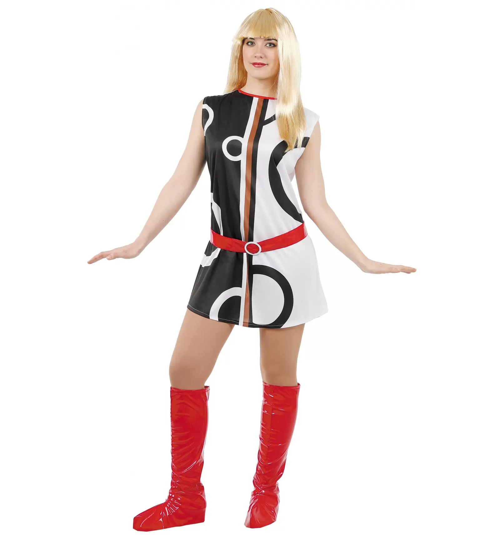 Te convertirás en la reina de la pista de baile al lucir este llamativo vestido de chica ye ye con el que sorprenderás a todos tus amigos.
