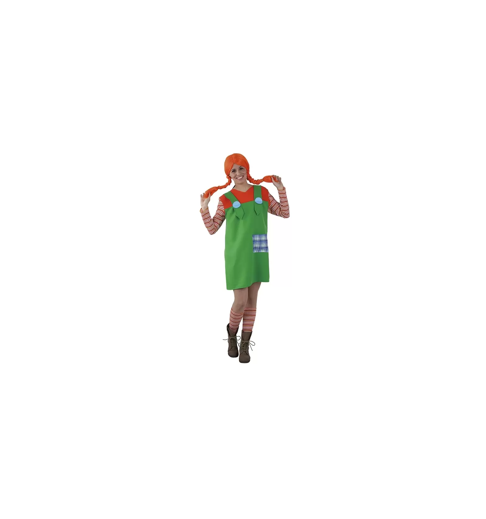 Este clásico y económico disfraz de chica con coletas se encuentra disponible en talla única 44 para mujer.