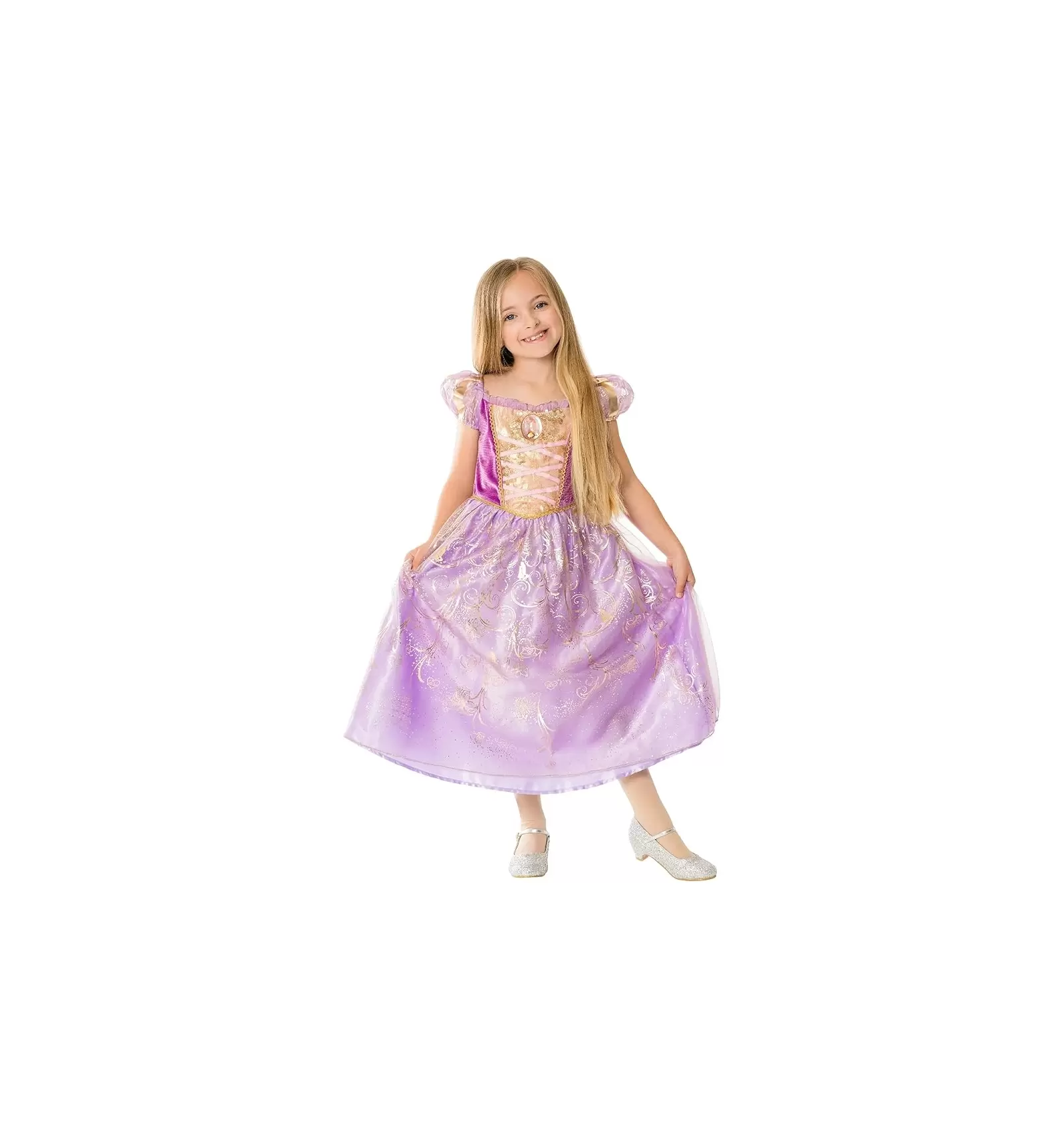 Consigue ahora este original vestido de princesa Rapunzel y te sentirás como una auténtica princesa... Este brillante disfraz se encuentra disponible en diferentes tallas y será un modelito que dejará a todos tus amigos con la boca abierta gracias a su bonito diseño.