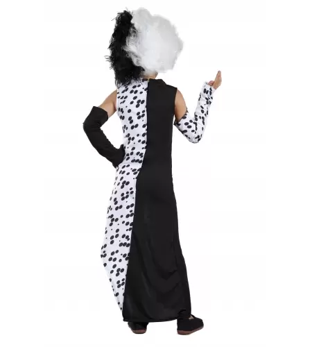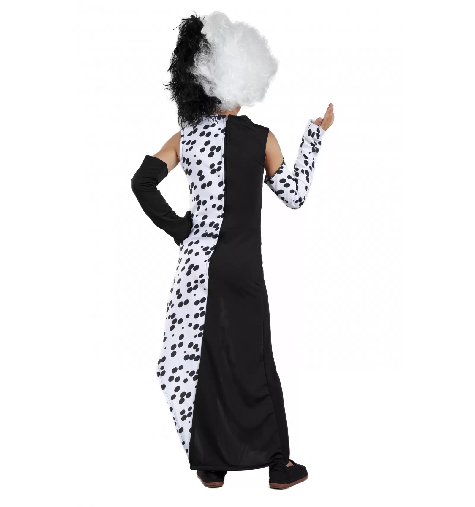 Este nuevo y llamativo vestido de Cruela para niña será sin duda uno de los disfraces más coloridos de tu próxima fiesta de carnaval. Disponible en cuatro tallas diferentes será uno de los trajes más distinguidos de la noche.