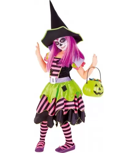Original y divertido disfraz de brujita del bosque infantil ideal para disfrutar de el el día de Carnaval o la próxima noche de Halloweeen...