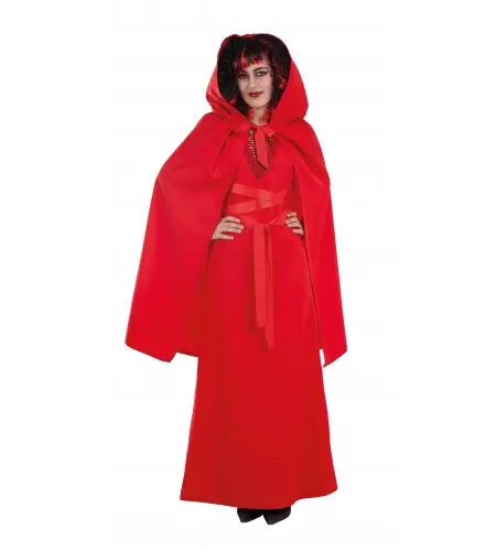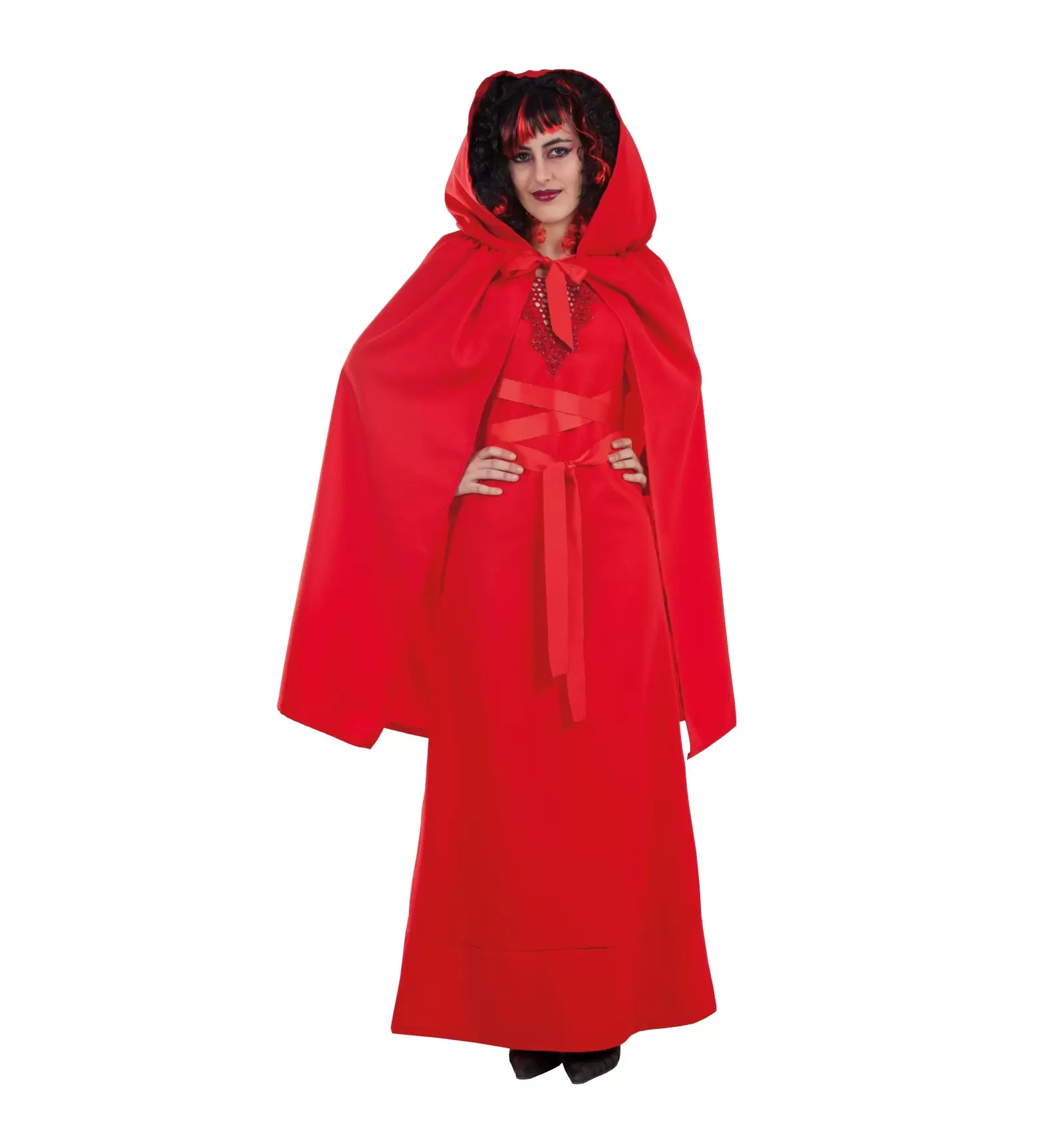 Disfraz fabricado en tallas 42 y 48 e inlcuye: capa con capucha y vestido.