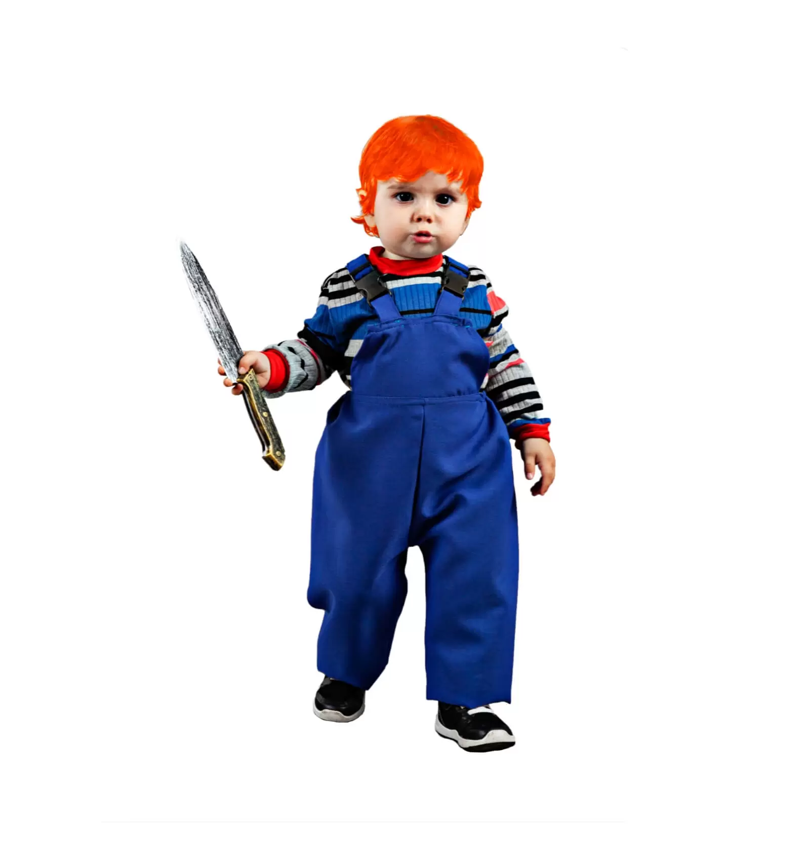 Este disfraz de muñeco diabólico bebé incluye camisa y peto.