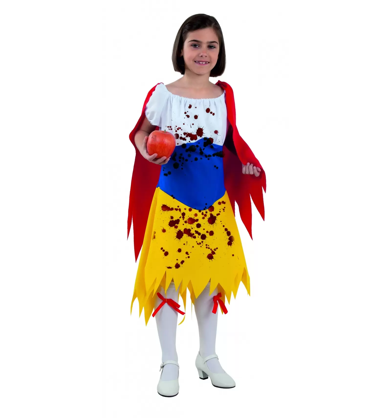 Este disfraz de blanca nieves sangrienta infantil es perfecto para destacar tu originalidad en la próxima fiesta de disfraces.