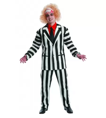 ¡Consigue ahora éste original y siniestro disfraz traje a rayas para la noche de todos los muertos con el que sorprenderás a todos tus amigos!