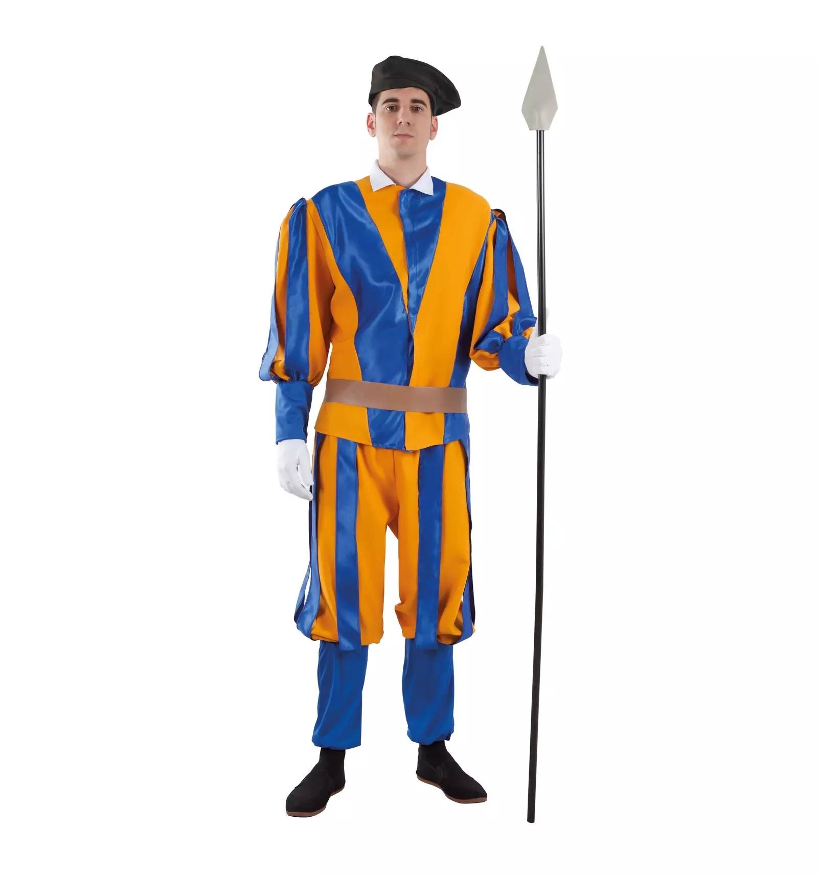 Este original y colorido disfraz de guardia real en colores azul y naranja se encuentra disponible en diferentes tallas para adulto y será una divertida opción para lucir en tu próxima fiesta de disfraces.