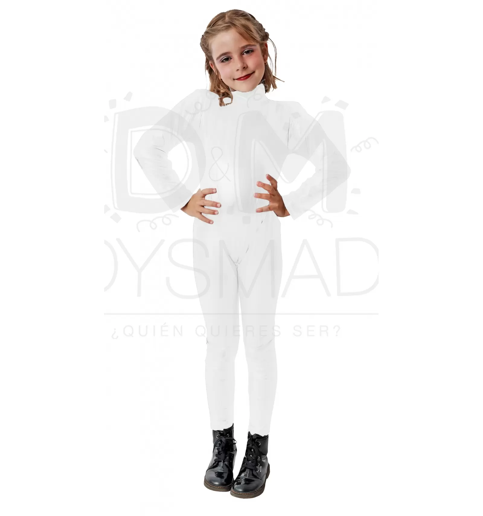 Este mono completo infantil blanco será el complemento perfecto para abrigarte bajo tu disfraz de carnaval.