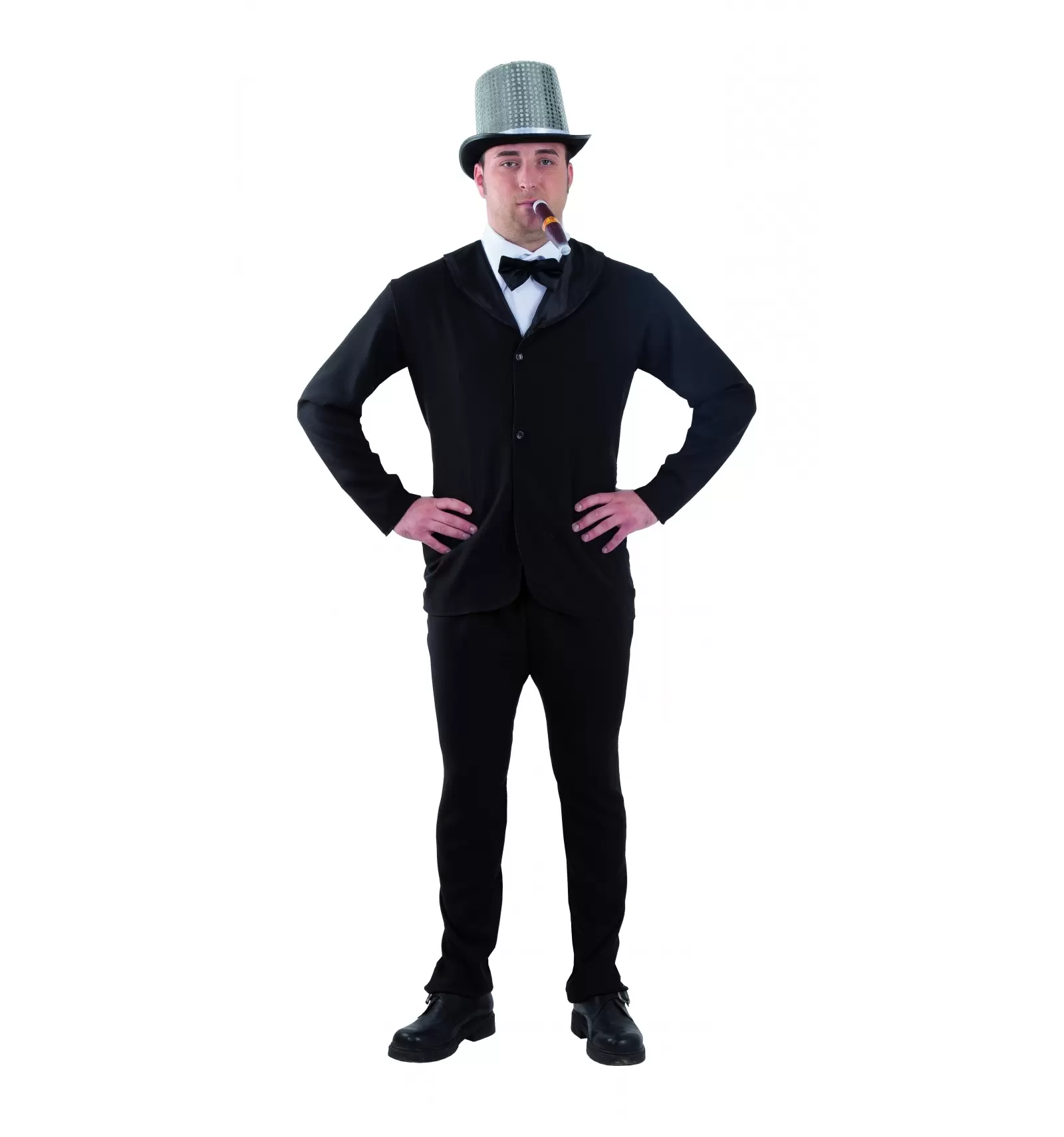 Este simpático disfraz de smoking para adulto se encuentra disponible en una sola talla y es un elegante modelito que cumplirá su función con creces en tu próximo evento al que necesites ir disfrazado.