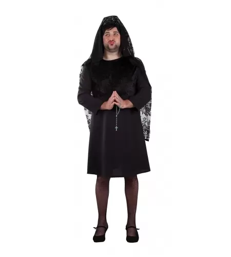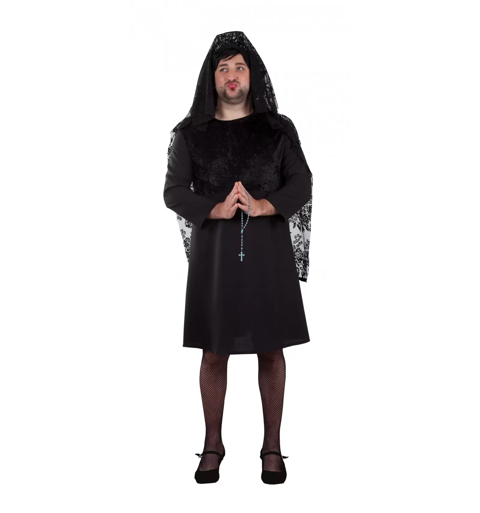 Divertido disfraz de manola para hombre en diferentes tallas. Incluye peineta, velo y vestido.