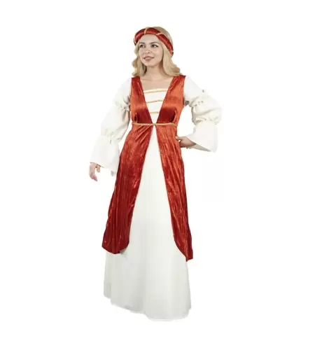 Este conseguido disfraz de doña Eleanor para mujer se encuentra disponible en tallas 42 y 48, y está fabricado con tejidos de alta calidad para un acabado perfecto.