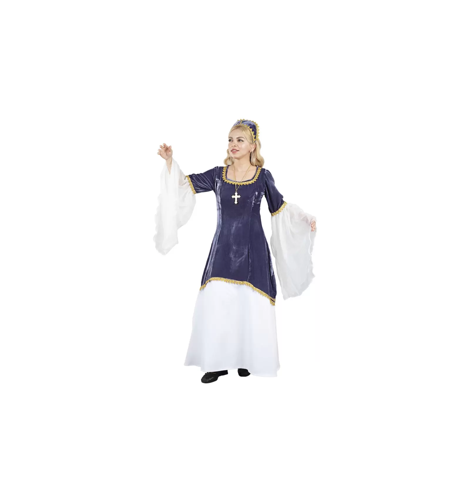 Este conseguido disfraz doña Petronila para adulto se encuentra disponible en tallas 38, 42 y 48, y está fabricado con tejidos de alta calidad para un acabado perfecto.