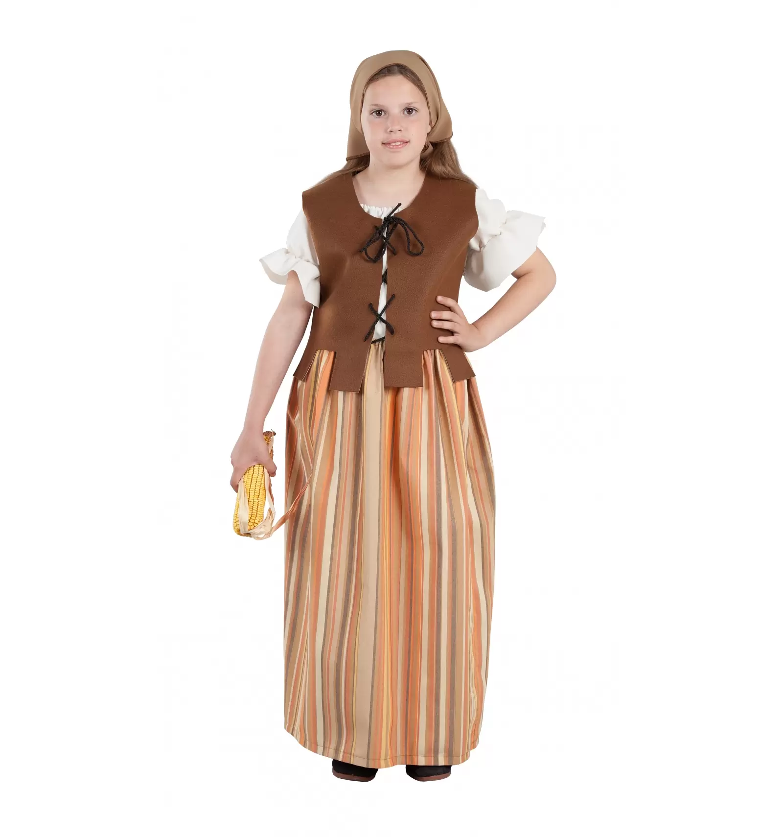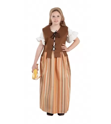 Este clásico vestido de labradora medieval infantil está disponible en nuestro catálogo en varias tallas y será un apropiado disfraz para el evento temático que te espera.